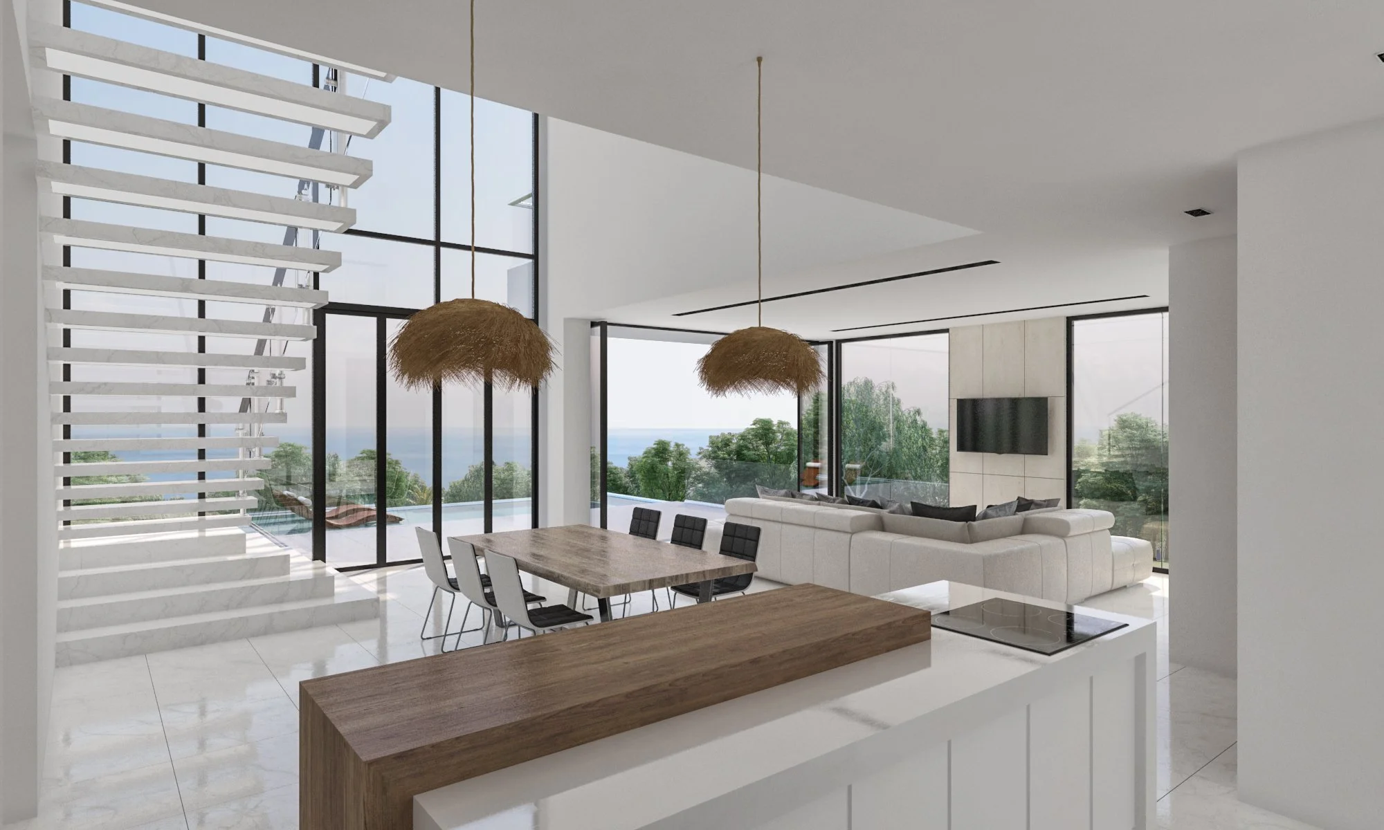 This house features is being built on a raised plot of land that allows beautiful ocean views, 2200 sq ft of living space, 3 bedrooms, 3 bathrooms with 20ft vaulted ceilings in the living room.